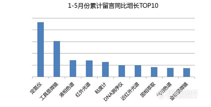 圖4中的定氮儀,和斯派克完全不一樣的行業(yè),斯派克專注工業(yè),而定氮儀是食物材料方面的,對大型食物材料企業(yè)尤為重要,隨著食物安全提高,越來越多中小型食物生產企業(yè)也需要到定氮儀,因此定氮儀毫無疑問地成了今年1-5月份的增長同比榜首。